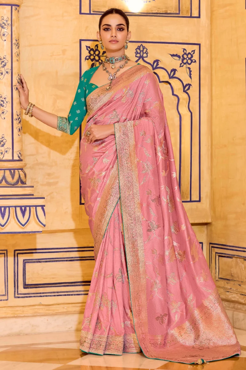 Peach Banarasi Silk Work Pre-Stitched Saree