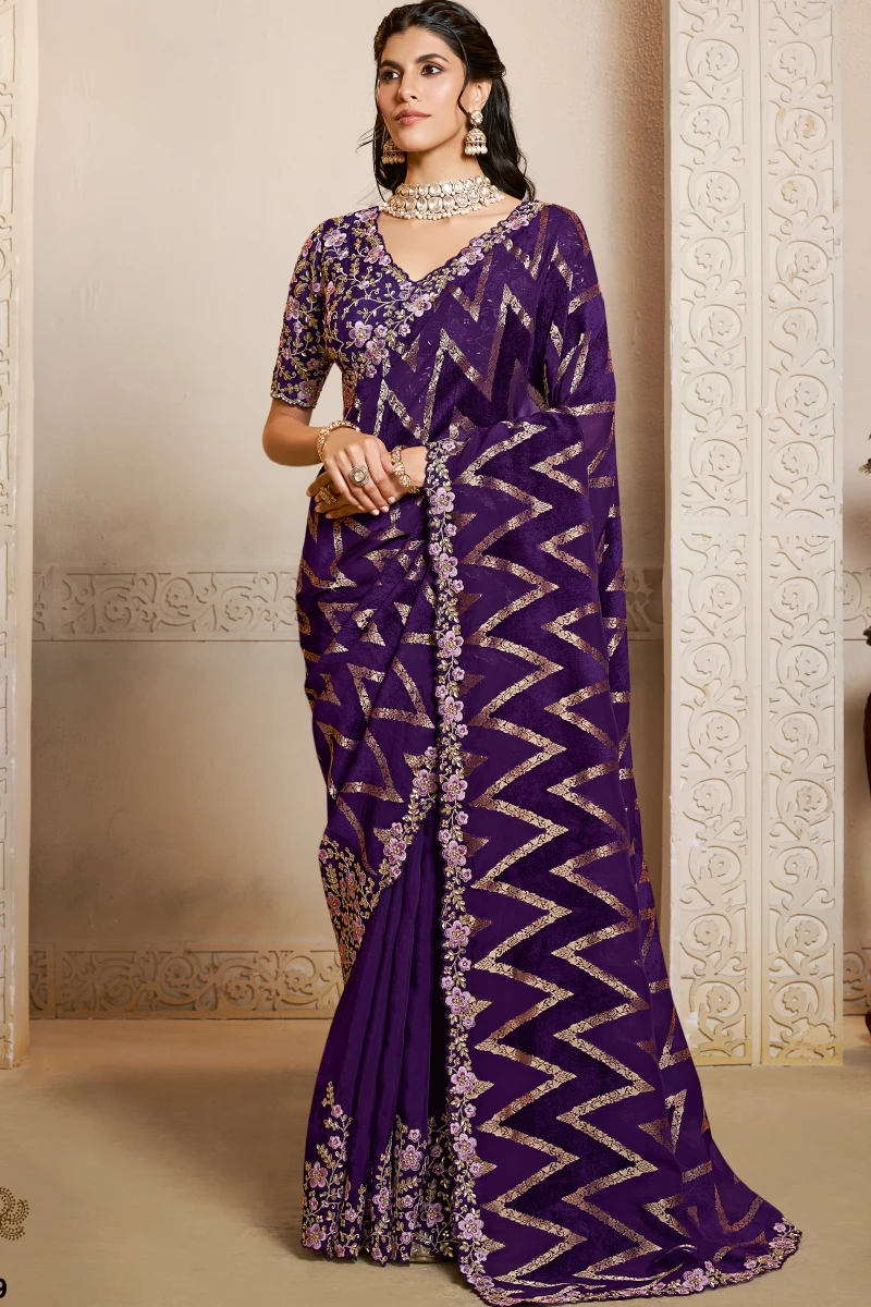 8 reviews for Purple Pure Jacquard Silk Handwork Pre-stitched Saree