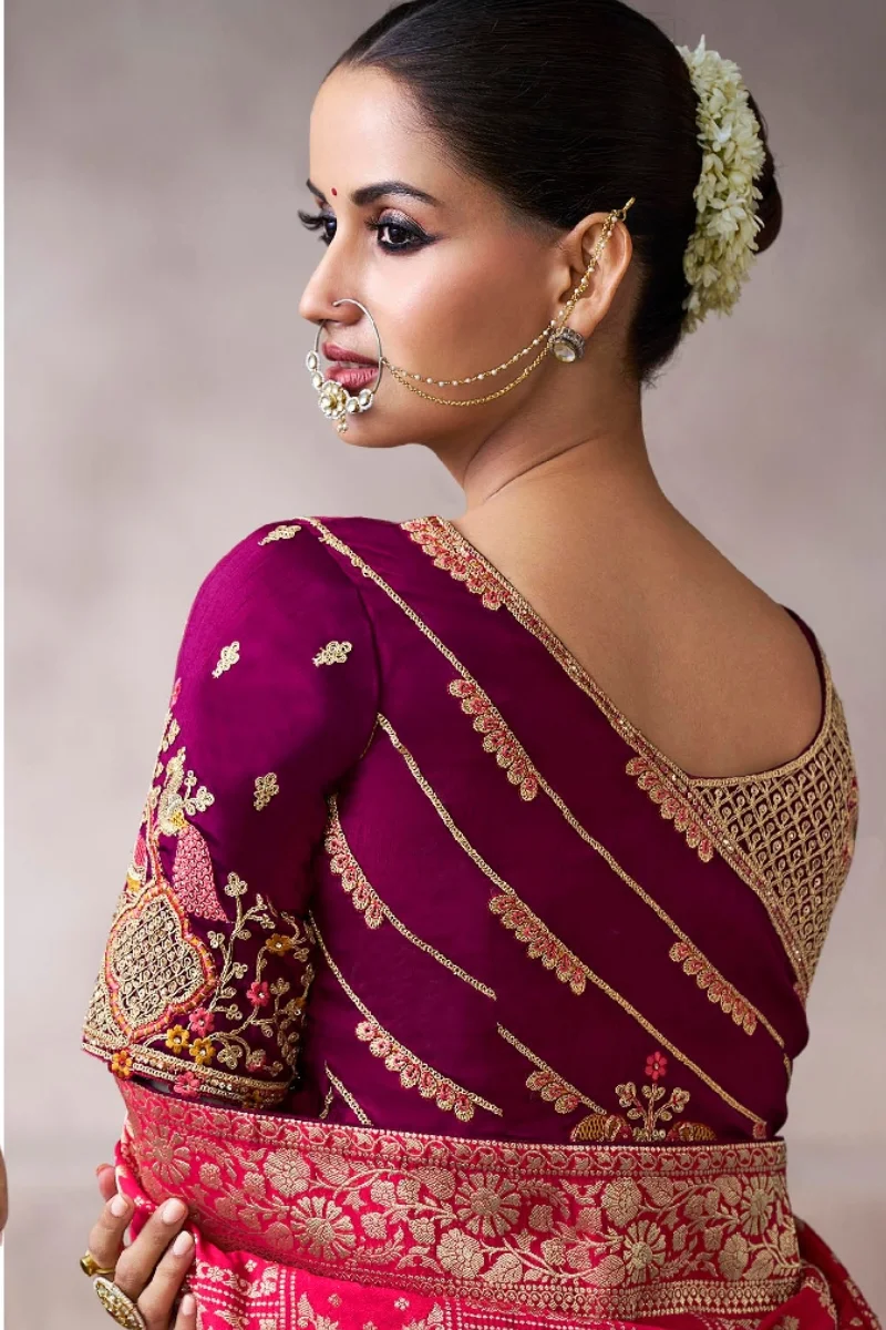 9 reviews for Red Zari Work Crepe Pre-Stitched Saree
